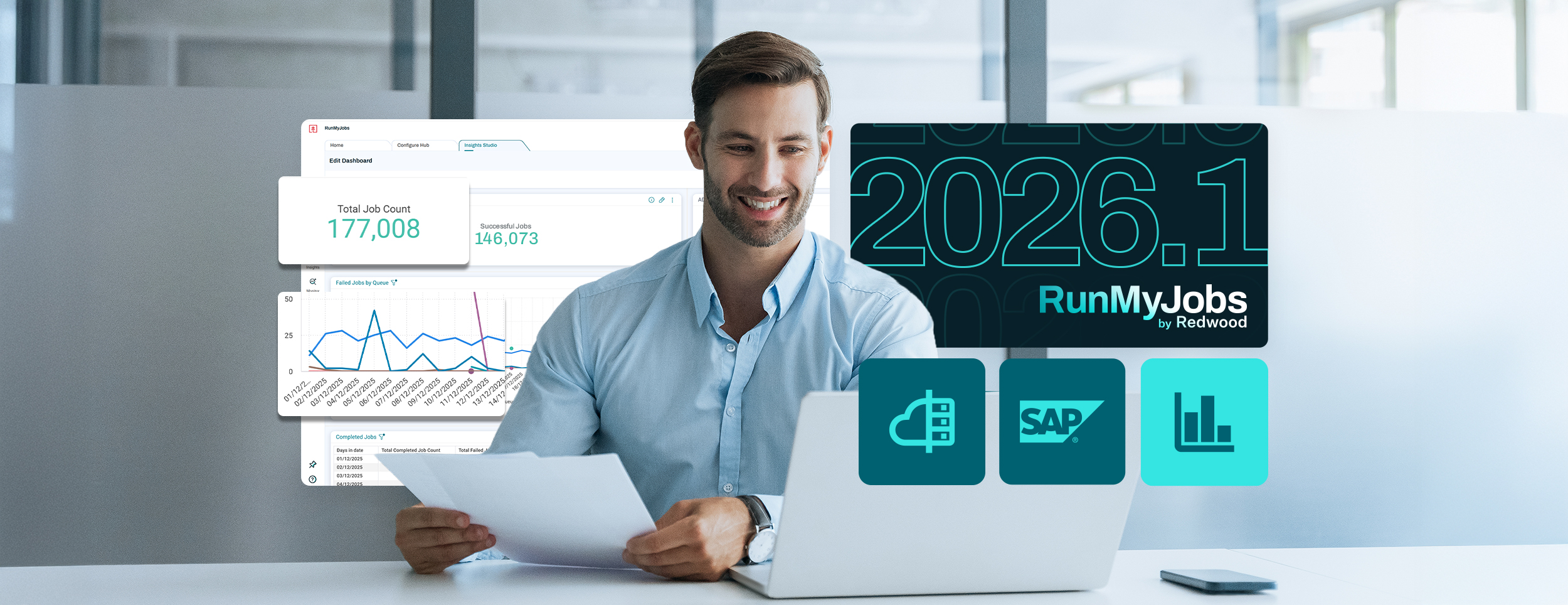 Increase your organization's agility and efficiency by easily integrating your tech stack using RunMyJobs integrations. No coding, scripting skills or hardware required.