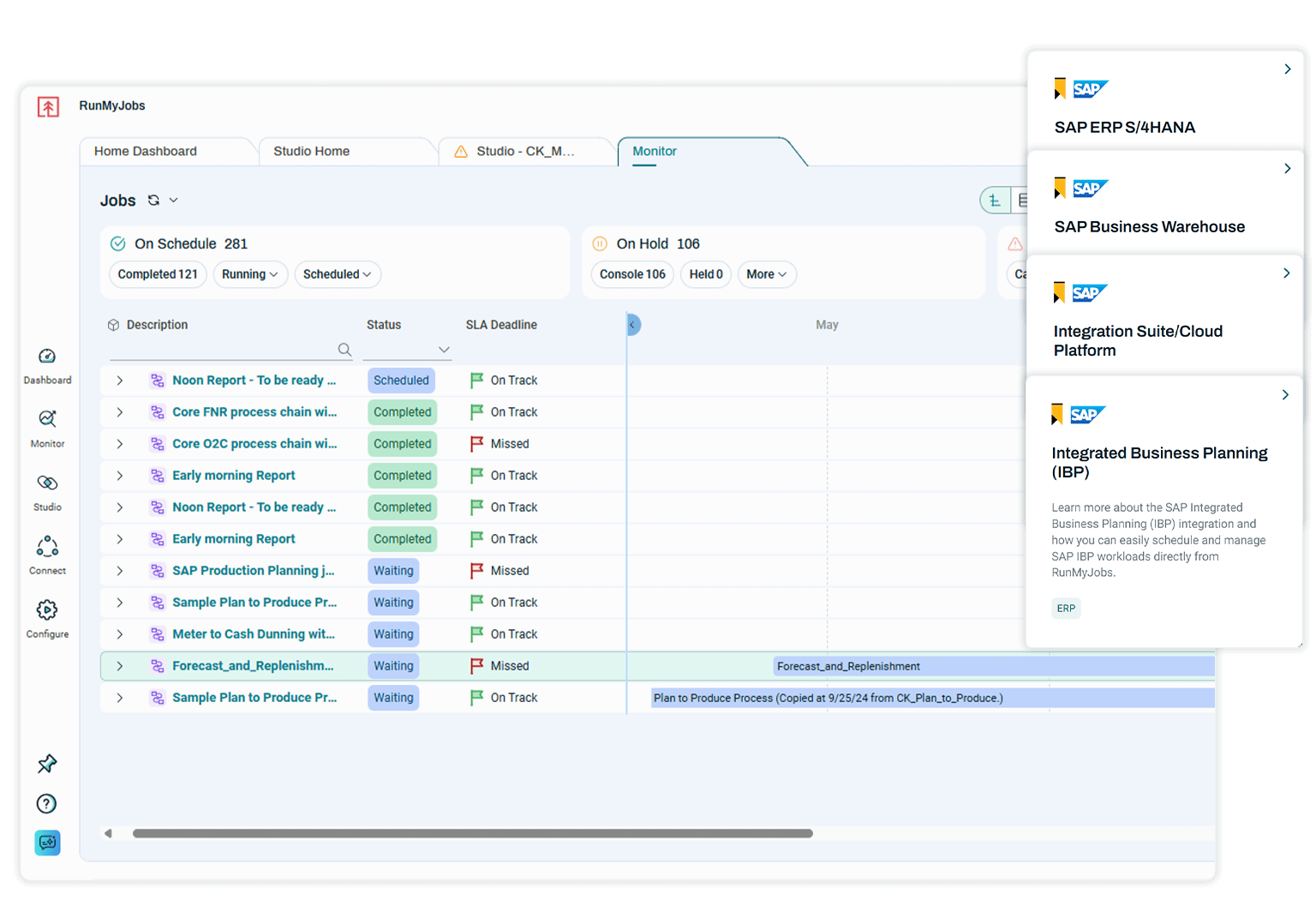 Leverage pre-built connectivity and integration with IBP to ensure the right planning tasks run in the right order, across SAP and non-SAP systems, without manual intervention.